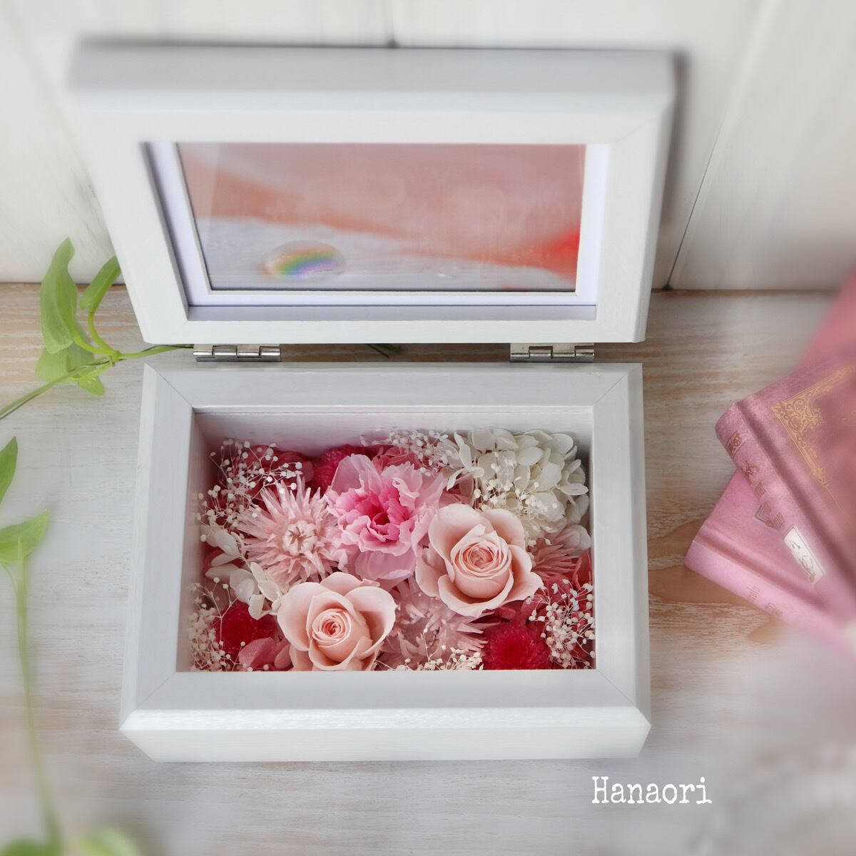 材質:MDF(紙張り)、ガラス面(写真、アレンジ部分)
